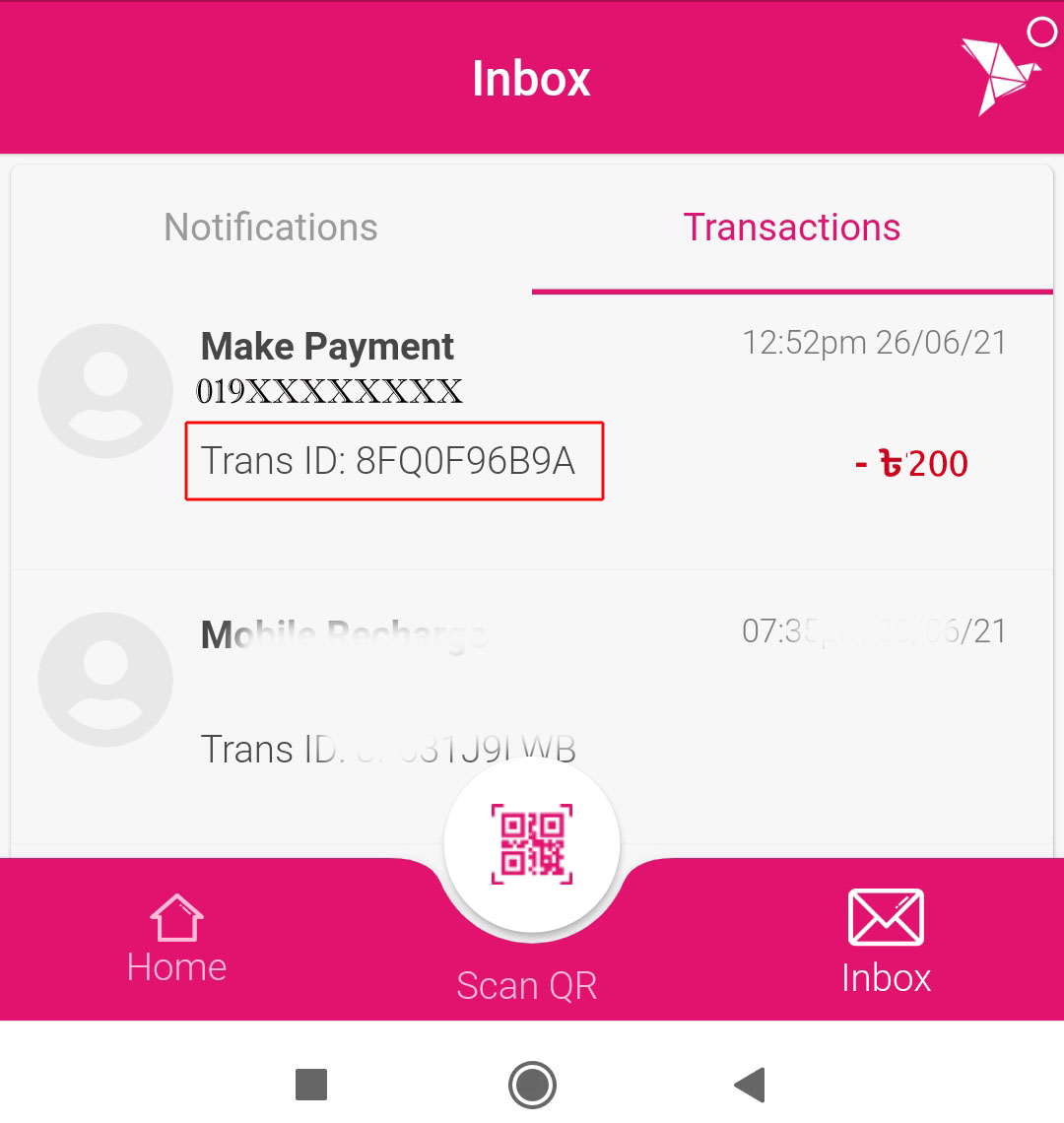If your Transaction method was bKash, then go to Inbox section inside bKash and find the Transaction ID.